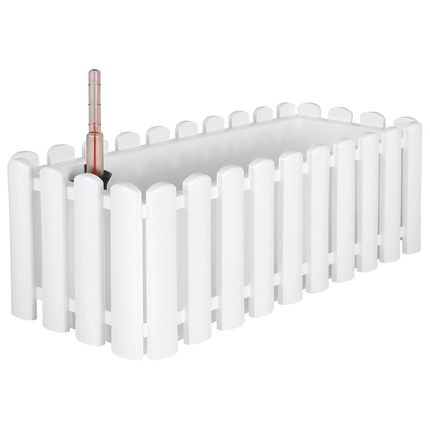 Im Bewässerungsblumenkasten ‚Aqua Palido‘ fühlen sich Ihre Pflanzen wohl. Er ist mit einem speziellen Bewässerungssystem und einem leicht ablesbaren Wasserstandsanzeiger versehen. So ist die Pflanzenpflege einfach. Mit seinem modernen Design in Weiß passt der Blumenkasten zu vielen Gartenmöbeln. Er besteht aus strapazierfähigem Kunststoff und ist 47 x 19,5 x 17 cm groß.