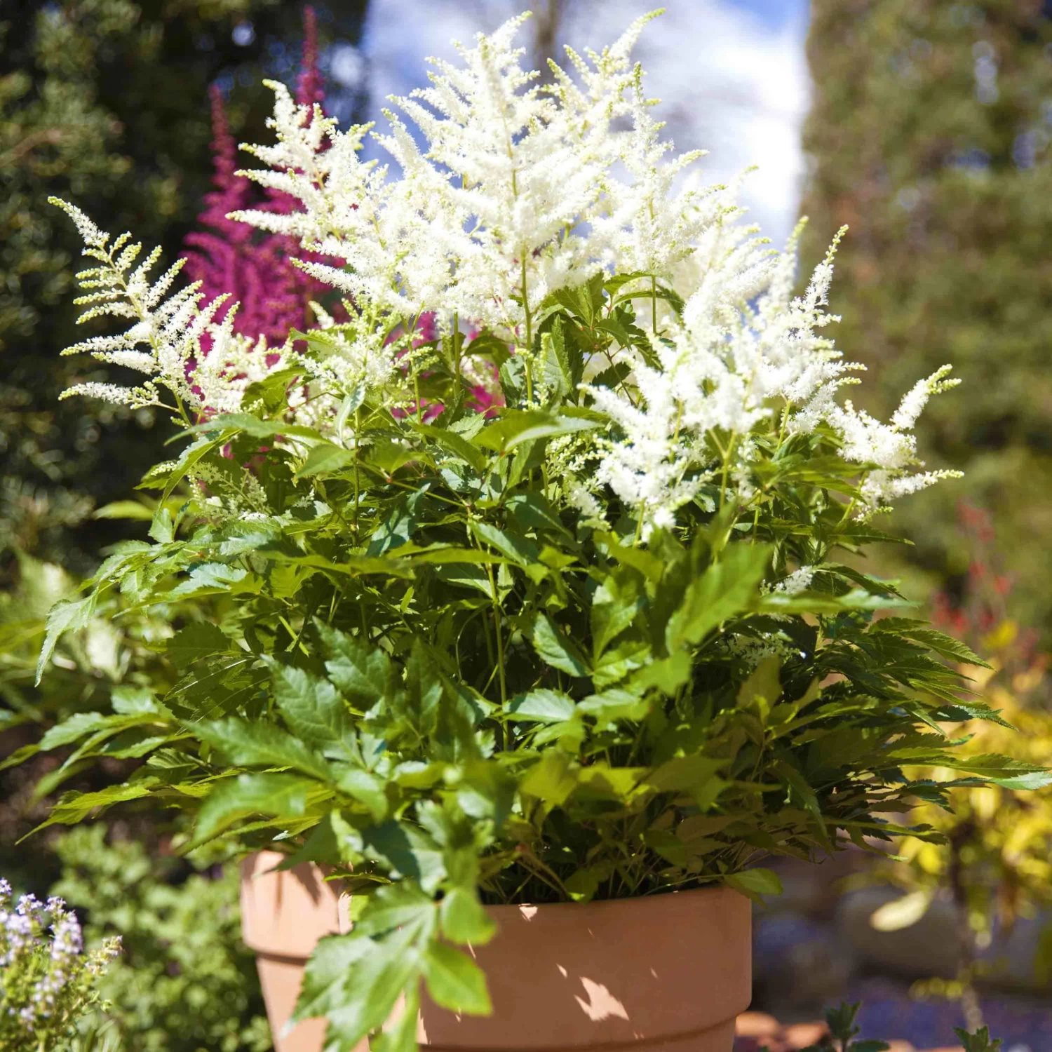 Bringen Sie mit den weißblühenden Astilben Leichtigkeit und den Zauber des Sommers in Ihr Staudenbeet. Werden die prächtigen Stauden flächig in Gruppen von 3-5 Pflanzen geflanzt, entsteht eine einzigartige Wirkung, die den Garten gleich nochmal so schön erscheinen lässt.