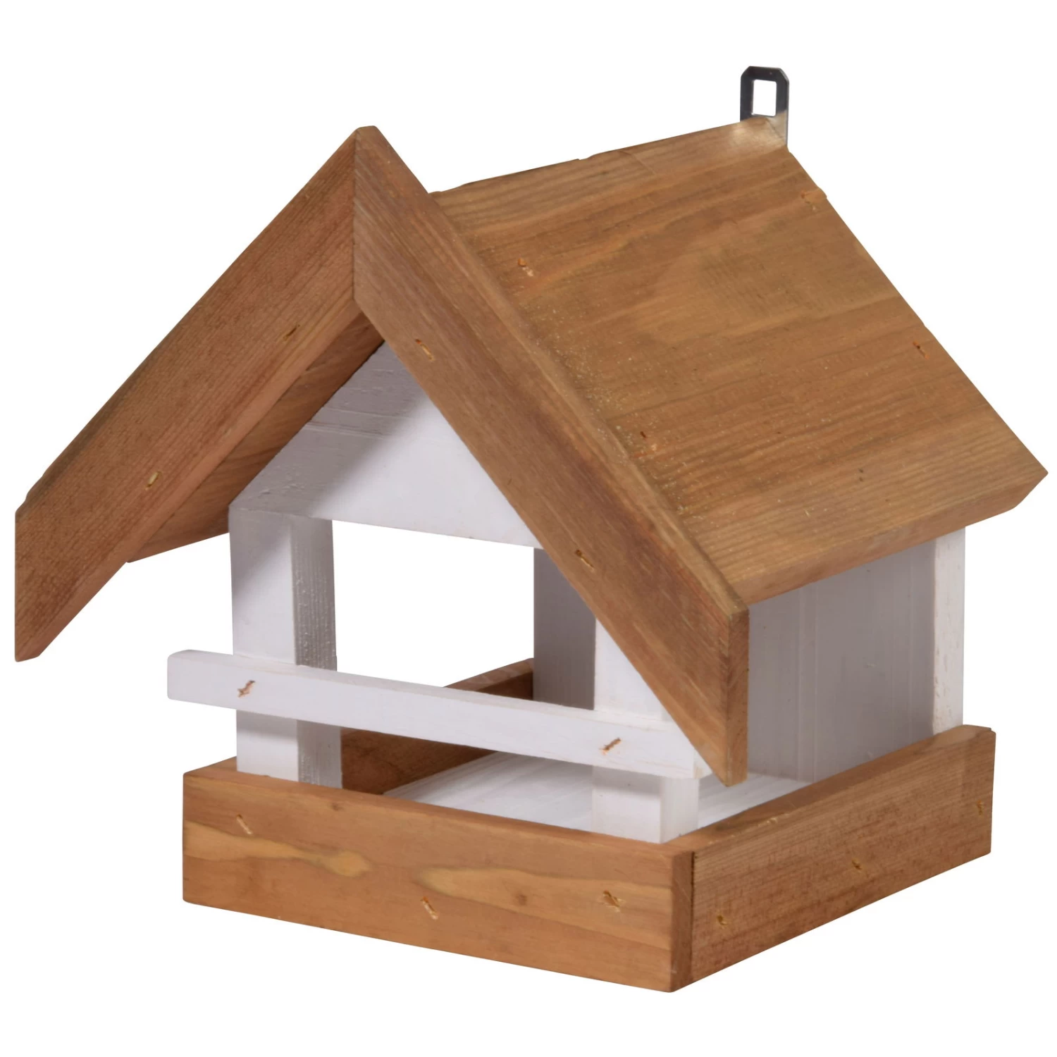 Nicht nur im Winter, sondern auch zu jeder Jahreszeit sind Wildvögel für eine kleine Stärkung dankbar. Dieses sympathische und handliche Futterhaus aus Kiefernholz entwickelt sich schnell zu einer beliebten Anlaufstelle für die gefiederten Freunde. In die Rückwand ist eine praktische Aufhängevorrichtung integriert, zugleich können die Vögel das Futterhaus von allen Seiten anfliegen.