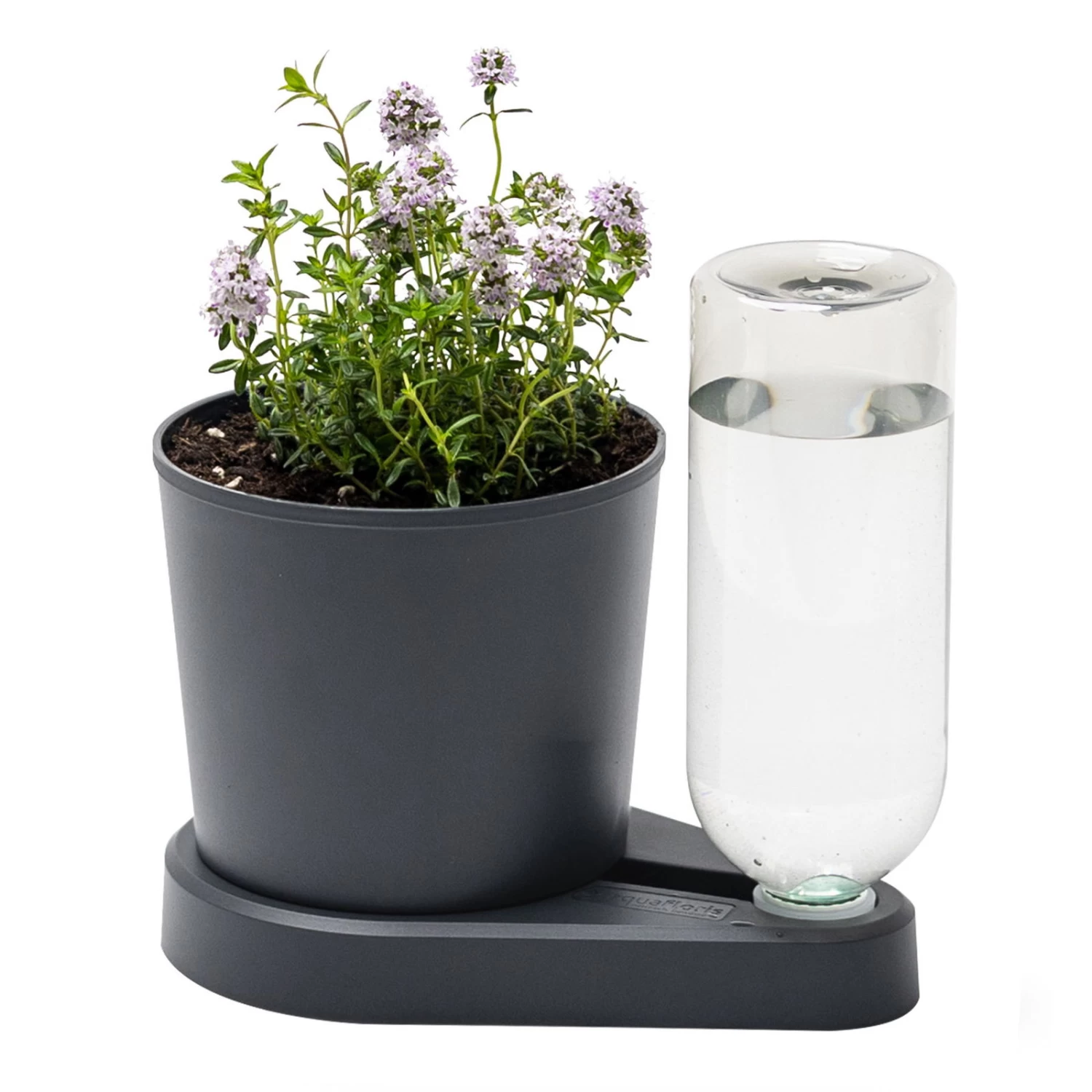 Der Kräuterheld kümmert sich um Ihre Küchenkräuter oder Zimmerpflanzen und versorgt die Gewächse mit lebenswichtiger Feuchtigkeit. Das Pflanzgefäß aus strapazierfähigem Kunststoff in der Farbe Anthrazit ist selbstbewässernd und funktioniert dabei nach rein physikalischem Prinzip ohne Strom oder Batterien.