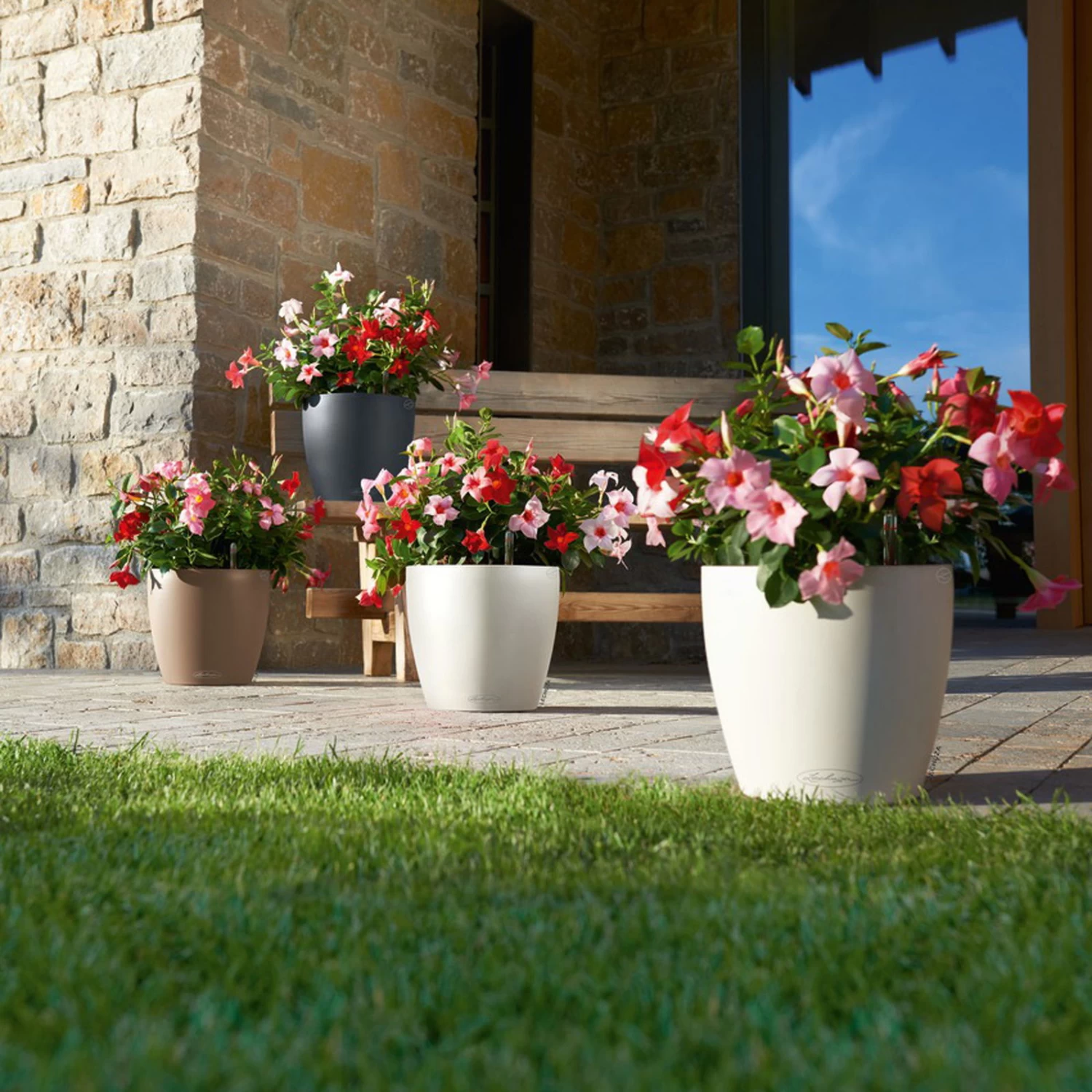 Dieses Pflanzgefäß besteht aus strapazierfähigem Kunststoff und eignet sich gleich gut für Dauereinsatz auf Ihrem Balkon, Ihrer Terrasse oder auch in den Innenräumen. Der imposante Blumentopf ‚Classico Color 70‘ von Lechuza in neutralem Schiefergrau überzeugt nicht zuletzt durch ein hohes Fassungsvermögen.