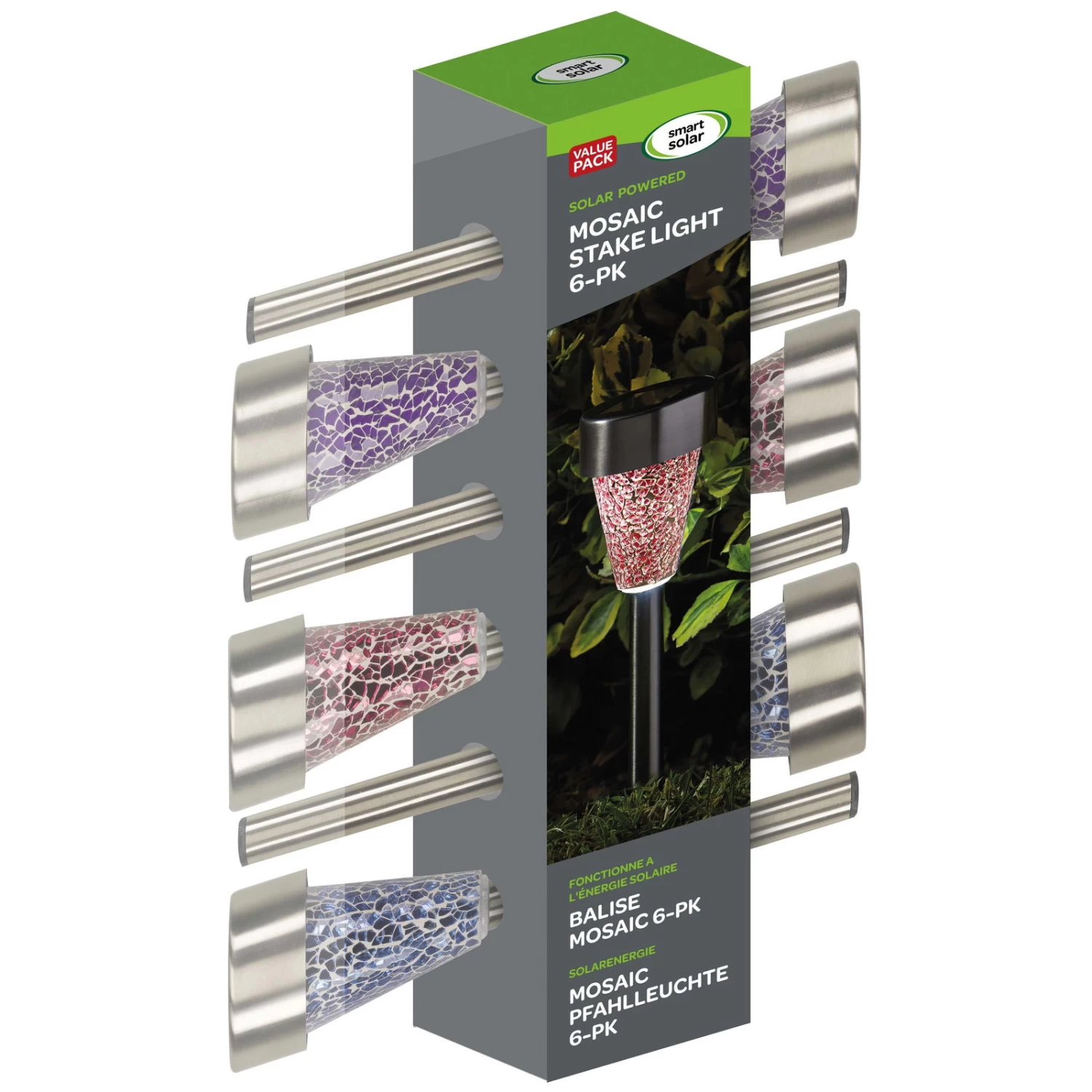 Mosaic Solarpfahlleuchte, Edelstahl / Glas, Silber / Bunt, 36 X 7,5 Cm, 6er Pack