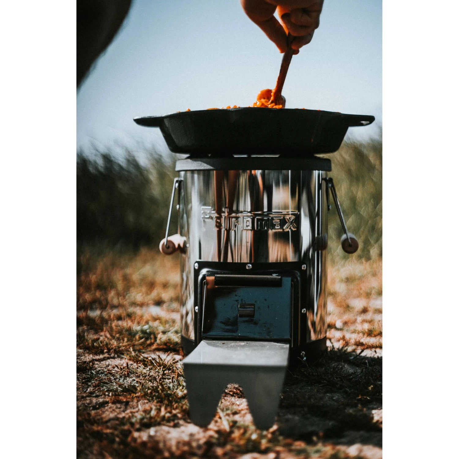 Dieser Raketenofen von Petromax ist eine kompakte Kochstation für Outdoor-Cooking. Der Raketenofen überzeugt durch eine solide Isolierung und gleichmäßige Wärmeverteilung. Ob Gusseisenpfanne oder Kochtopf – Ihr Kochgeschirr wird durch den Petromax Raketenofen zügig erhitzt und schon bald sind die Speisen optimal durchgegart.