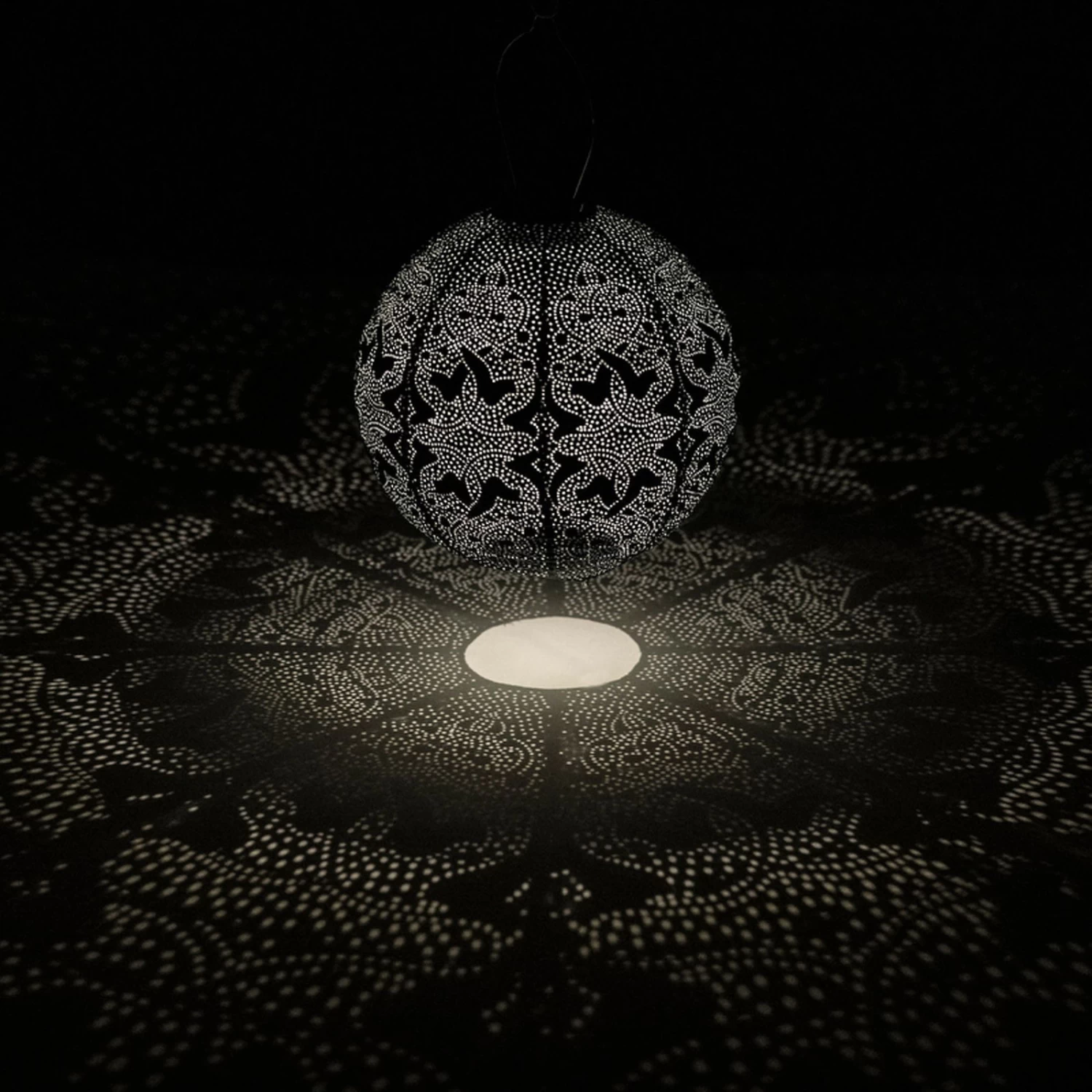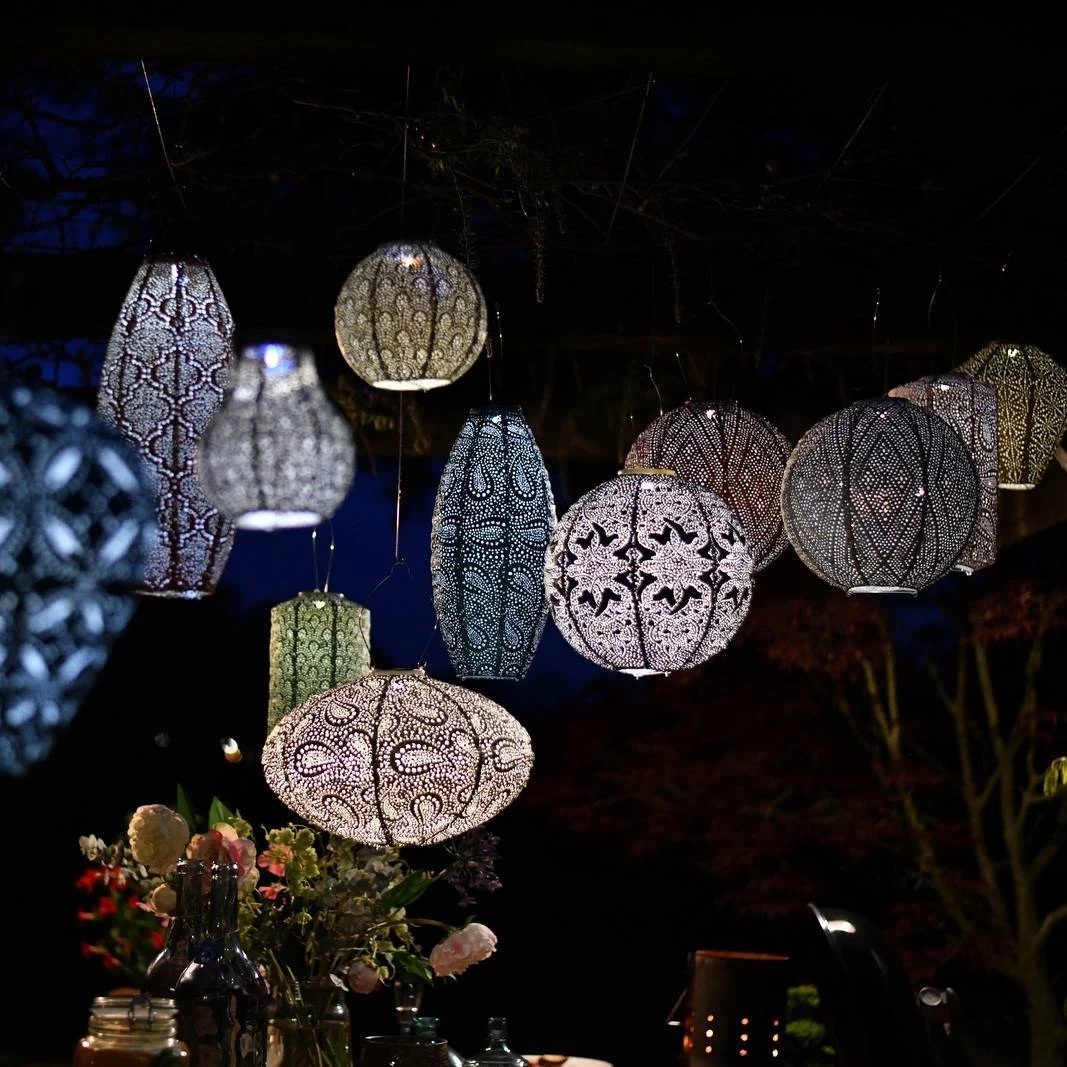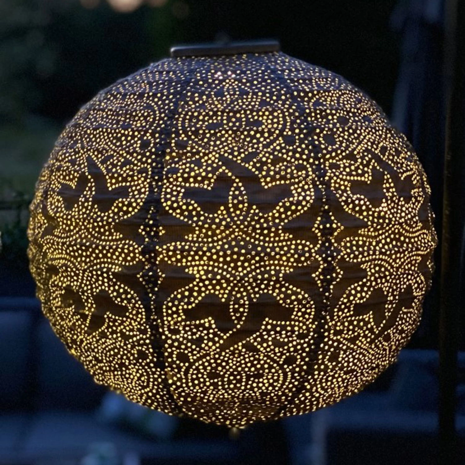 Bei einer Gartenparty spendet diese taupeene Solarlaterne ‚Round 30‘ ein elegantes Licht. Es entstehen schöne Muster, die einen zusätzlichen Charme versprühen. Die Laterne ist zusammenfaltbar und deshalb auch bestens als mobile Dekoration geeignet. Sie besteht aus Tyvek R1443 PU, 43 g/qm und hat die Größe 30 x 28,9 cm.