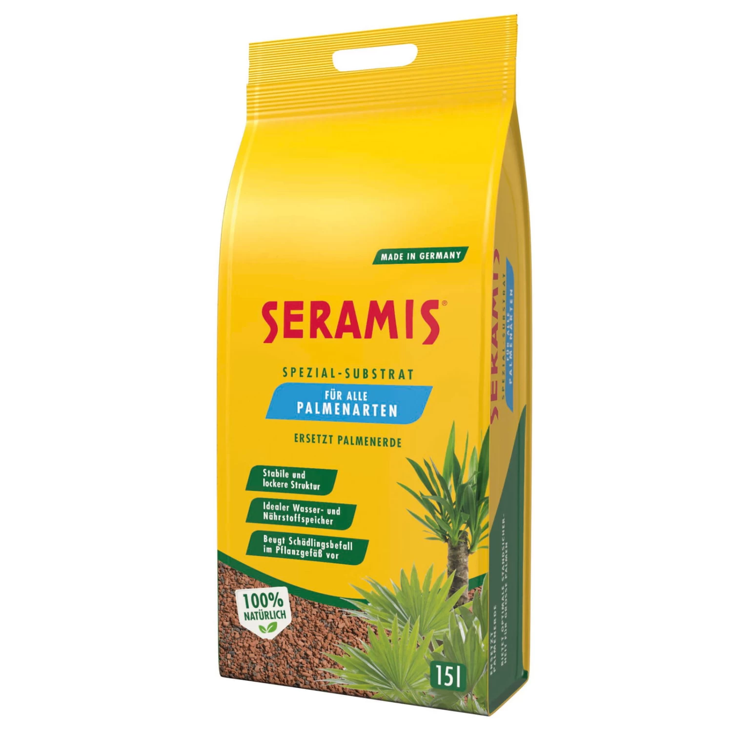 Sie möchten, dass Ihre Palmen zuhause genauso schön aussehen wie im letzten Sommerurlaub? Dann verwenden Sie das speziell für Palmen entwickelte Substrat von Seramis, dass mit zusätzlichen Silikaten den Zellaufbau Ihrer Pflanzen unterstützt und fördert. Zusätzlich verbessert es die Standsicherheit Ihrer Palme und bietet ihr Strukturstabilität.