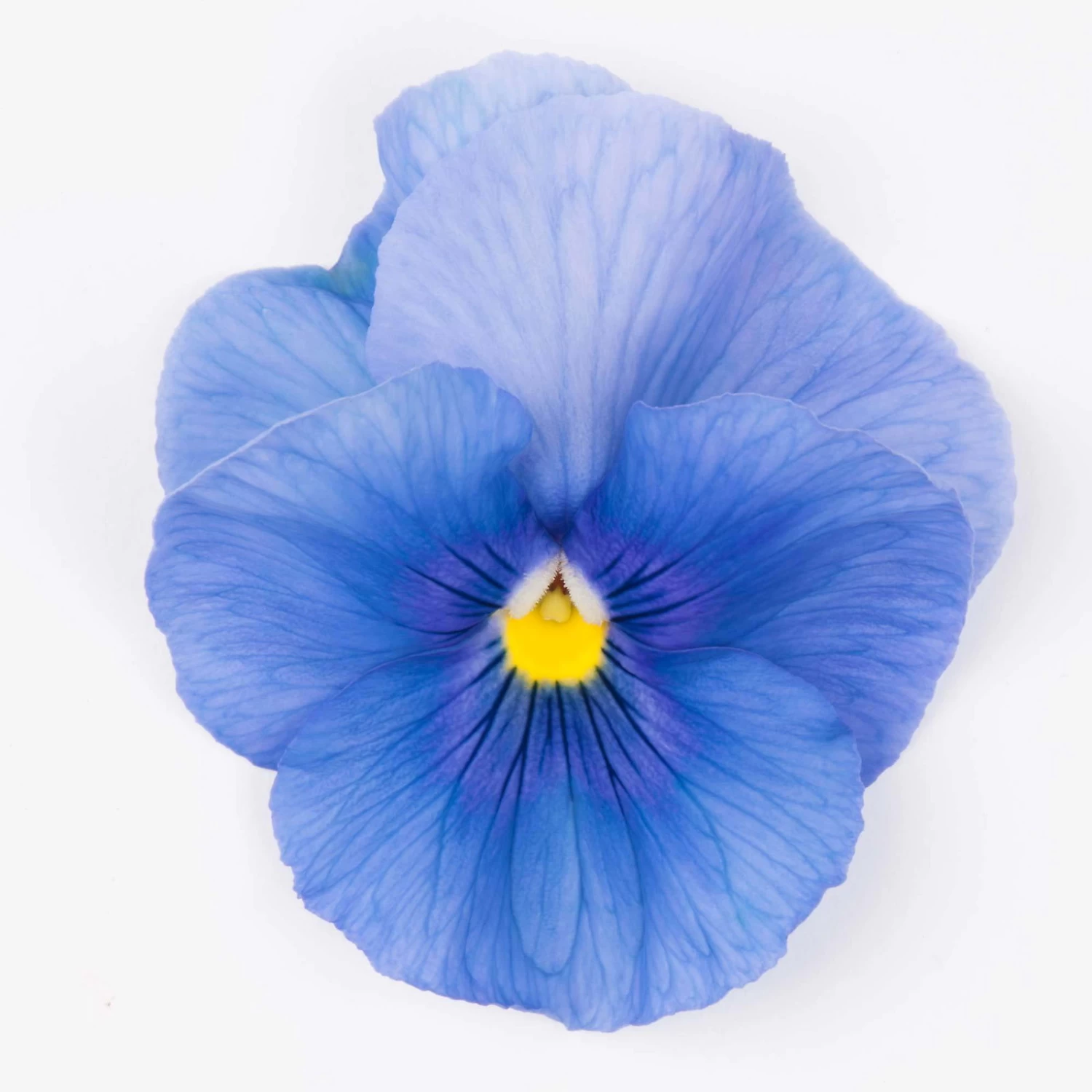 Die faszinierenden Blüten der Stiefmütterchen bestehen aus 5 Blütenblättern, die sich teils überdecken; unten im Vordergrund die „Stiefmutter“, seitlich davon die zwei „Töchter“ und oben im Hintergrund die 2 „Stieftöchter“ Sie stehen an Stielen einzeln über die ganze Pflanze verteilt. Die großen Blüten in himmlischem Blau setzen bis in den Frühsommer hinein Akzente in Ihrem Zuhause. Sie erhalten eine blaue Sorte nach Verfügbarkeit. Diese kann sowohl mit als auch ohne dunkles Auge sein und im Farbton variieren.